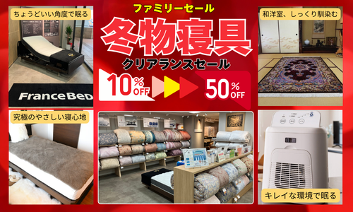 羽毛ふとんをはじめ、冬物毛布、冬物敷パッドなどを特別価格でご提供します!